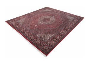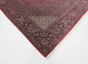 Dieser Teppich kommt aus der persischen Stadt Bidjar, welche nord-westlich im Iran liegt. Bekannt sind diese Teppiche für ihren besonders robusten Flor, der unter anderem durch das starke verwendete Garn bei der Schusskette entsteht. Der warme rostrote Grundfarbton eignet sich besonders gut, um Ihren Raum eine elegante Atmosphäre zu verleihen. Typisch für alle Bidjar Teppiche ist das Herati-Muster (Fischmuster), mit oder ohne Medaillon. Durch die verwendeten Materialen und die dichte Knüpfung ist dieser Teppich von besonders hoher Lebensdauer
