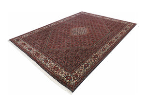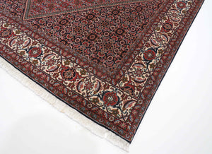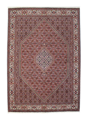 Dieser Teppich kommt aus der persischen Stadt Bidjar, welche nord-westlich im Iran liegt. Bekannt sind diese Teppiche für ihren besonders robusten Flor, der unter anderem durch das starke verwendete Garn bei der Schusskette entsteht. Der warme rostrote Grundfarbton eignet sich besonders gut, um Ihren Raum eine elegante Atmosphäre zu verleihen. Typisch für alle Bidjar Teppiche ist das Herati-Muster (Fischmuster), mit oder ohne Medaillon. Durch die verwendeten Materialen und die dichte Knüpfung ist dieser Teppich von besonders hoher Lebensdauer.