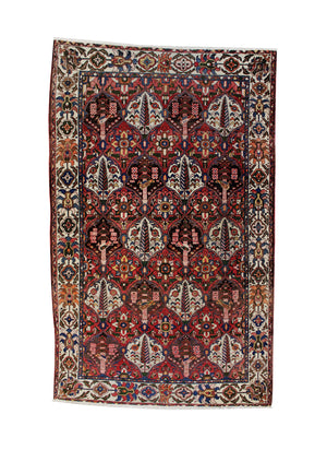 Dieser Teppich kommt aus Indien, wo bekannte persische Provenienzen als Vorlage dienen. Anders als beim persischen Bakhtiar, welcher im südwestlichen Iran geknüpft wird, kommt dieser aus indischen Manufakturen. Das sogenannte traditionelle Garden-Design hat über die Jahre hinweg eine hohe Beliebtheit in der westlichen Welt errungen. Die dichte Knüpfung und Materialen sorgen dafür, dass der Teppich sehr strapazierfähig und langlebig ist.