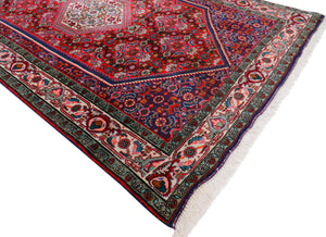 Dieser Teppich kommt aus der persischen Stadt Bidjar, welche nord-westlich im Iran liegt. Bekannt sind diese Teppiche für ihren besonders robusten Flor, der unter anderem durch das starke verwendete Garn bei der Schusskette entsteht. Der warme rostrote Grundfarbton eignet sich besonders gut, um Ihren Raum eine elegante Atmosphäre zu verleihen. Typisch für alle Bidjar Teppiche ist das Herati-Muster (Fischmuster), mit oder ohne Medaillon. Durch die verwendeten Materialen und die dichte Knüpfung ist dieser Teppich von besonders hoher Lebensdauer.