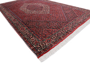Dieser Teppich kommt aus der persischen Stadt Bidjar, welche nord-westlich im Iran liegt. Bekannt sind diese Teppiche für ihren besonders robusten Flor, der unter anderem durch das starke verwendete Garn bei der Schusskette entsteht. Der warme rostrote Grundfarbton eignet sich besonders gut, um Ihren Raum eine elegante Atmosphäre zu verleihen. Typisch für alle Bidjar Teppiche ist das Herati-Muster (Fischmuster), mit oder ohne Medaillon. Durch die verwendeten Materialen und die dichte Knüpfung ist dieser Teppich von besonders hoher Lebensdauer.