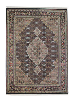 Dieser Teppich kommt aus Indien, wo bekannte persische Provenienzen als Vorlage dienen. Anders als beim persischen Vorbild, welches in der Stadt Tabriz geknüpft wird, kommt dieser aus indischen Manufakturen. Das elegante Design mit nur minimalen Motiven macht diesen Teppich zeitlos und modern. Die dichte Knüpfung und Materialen sorgen dafür, dass der Teppich sehr strapazierfähig und langlebig ist.