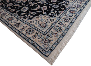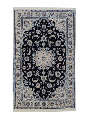 Dieser Teppich kommt aus der persischen Wüstenstadt Nain und ist bekannt für seine elegante blauweiße Farbgebung. Bei Teppichliebhabern gelten Nain Teppiche als besonders schön durch ihre fein gestalteten Motive. Die verwendeten Materialen sind überwiegend Wolle oder Korkwolle mit Seide. Die dichte Knüpfung und die hervorragenden Materialen sorgen dafür, dass der Teppich sehr strapazierfähig und langlebig ist. Unterschieden wird in der Feinheit des Teppichs durch die Angaben 9LA-4LA.Die feinste Knüpfung liegt bei 4LA mit bis zu 1000000 Knoten pro Quadratmeter. Holen Sie sich ein Bodenkunstwerk, welches sich wunderbar in Ihre Wohnung einfügt.