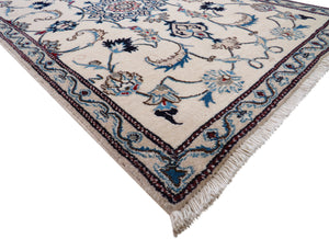 Dieser Teppich kommt aus der persischen Wüstenstadt Nain und ist bekannt für seine elegante blauweiße Farbgebung. Bei Teppichliebhabern gelten Nain Teppiche als besonders schön durch ihre fein gestalteten Motive. Die verwendeten Materialen sind überwiegend Wolle oder Korkwolle mit Seide. Die dichte Knüpfung und die hervorragenden Materialen sorgen dafür, dass der Teppich sehr strapazierfähig und langlebig ist. Unterschieden wird in der Feinheit des Teppichs durch die Angaben 9LA-4LA.Die feinste Knüpfung liegt bei 4LA mit bis zu 1000000 Knoten pro Quadratmeter. Holen Sie sich ein Bodenkunstwerk, welches sich wunderbar in Ihre Wohnung einfügt.