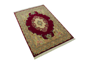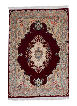 Dieser Teppich kommt aus der persischen Stadt Täbriz, welche im Nordwesten des Irans liegt. Durch die generationsübergreifenden Knüpf-Familien gilt diese Stadt als eine der ältesten Teppichzentren der Welt. Beliebt wurden diese Teppiche vor allem durch die exklusiven Muster und Materialen von Schur-Korkwolle und Naturseide. Farblich passen die Stücke ideal zum heutigen Einrichtungsstil, da überwiegend dezente Pastellfarben verwendet werden. Gewisse Stücke werden allerdings bewusst sehr farbenfroh und reich verziert an Motiven geknüpft, sodass sie von Kunstwerken nicht zu unterscheiden sind. Die Feinheit dieser Teppiche wird in Raj angegeben und so unterscheidet man von 40Raj – 70Raj. Die feinste Knüpfung sind 70Raj mit knapp 1 000 000 Knoten pro Quadratmeter. Die dichte Knüpfung und die hervorragenden Materialen sorgen dafür, dass der Teppich sehr strapazierfähig und langlebig ist.