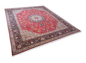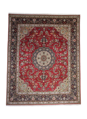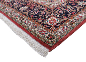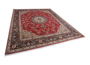 Dieser Teppich kommt aus der persischen Stadt Täbriz, welche im Nordwesten des Irans liegt. Durch die generationsübergreifenden Knüpf-Familien gilt diese Stadt als eine der ältesten Teppichzentren der Welt. Beliebt wurden diese Teppiche vor allem durch die exklusiven Muster und Materialen von Schur-Korkwolle und Naturseide. Farblich passen die Stücke ideal zum heutigen Einrichtungsstil, da überwiegend dezente Pastellfarben verwendet werden. Gewisse Stücke werden allerdings bewusst sehr farbenfroh und reich verziert an Motiven geknüpft, sodass sie von Kunstwerken nicht zu unterscheiden sind. Die Feinheit dieser Teppiche wird in Raj angegeben und so unterscheidet man von 40Raj – 70Raj. Die feinste Knüpfung sind 70Raj mit knapp 1 000 000 Knoten pro Quadratmeter. Die dichte Knüpfung und die hervorragenden Materialen sorgen dafür, dass der Teppich sehr strapazierfähig und langlebig ist.