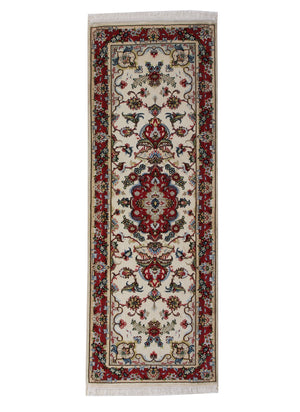Dieser Teppich kommt aus der persischen Stadt Täbriz, welche im Nordwesten des Irans liegt. Durch die generationsübergreifenden Knüpf-Familien gilt diese Stadt als eine der ältesten Teppichzentren der Welt. Beliebt wurden diese Teppiche vor allem durch die exklusiven Muster und Materialen von Schur-Korkwolle und Naturseide. Farblich passen die Stücke ideal zum heutigen Einrichtungsstil, da überwiegend dezente Pastellfarben verwendet werden. Gewisse Stücke werden allerdings bewusst sehr farbenfroh und reich verziert an Motiven geknüpft, sodass sie von Kunstwerken nicht zu unterscheiden sind. Die Feinheit dieser Teppiche wird in Raj angegeben und so unterscheidet man von 40Raj – 70Raj. Die feinste Knüpfung sind 70Raj mit knapp 1 000 000 Knoten pro Quadratmeter. Die dichte Knüpfung und die hervorragenden Materialen sorgen dafür, dass der Teppich sehr strapazierfähig und langlebig ist.