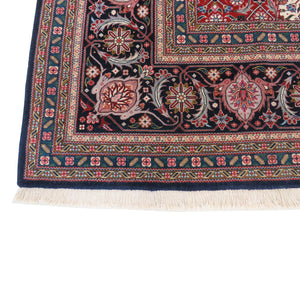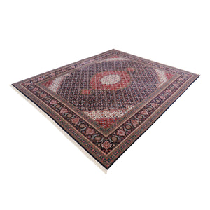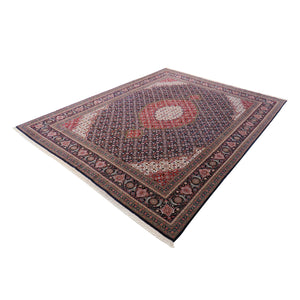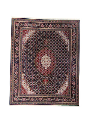 Dieser Teppich kommt aus der persischen Stadt Täbriz, welche im Nordwesten des Irans liegt. Durch die generationsübergreifenden Knüpf-Familien gilt diese Stadt als eine der ältesten Teppichzentren der Welt. Beliebt wurden diese Teppiche vor allem durch die exklusiven Muster und Materialen von Schur-Korkwolle und Naturseide. Farblich passen die Stücke ideal zum heutigen Einrichtungsstil, da überwiegend dezente Pastellfarben verwendet werden. Gewisse Stücke werden allerdings bewusst sehr farbenfroh und reich verziert an Motiven geknüpft, sodass sie von Kunstwerken nicht zu unterscheiden sind. Die Feinheit dieser Teppiche wird in Raj angegeben und so unterscheidet man von 40Raj – 70Raj. Die feinste Knüpfung sind 70Raj mit knapp 1 000 000 Knoten pro Quadratmeter. Die dichte Knüpfung und die hervorragenden Materialen sorgen dafür, dass der Teppich sehr strapazierfähig und langlebig ist.