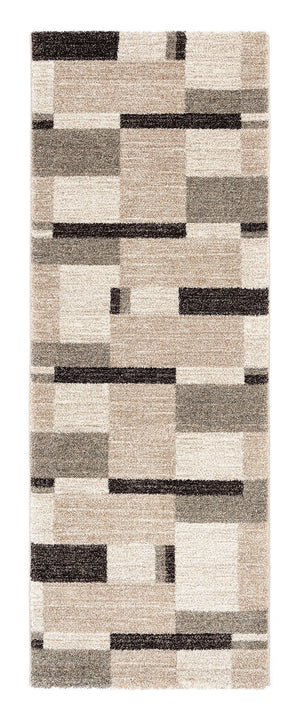 CASEPPO BROWN LÄUFER - Moderne Mosaikstruktur in angenehm-dezenten Farbverläufen! Geometrisch angeordnete Vierecke verschiedener Größe und Kolorierung sorgen für Form- und Farbenvielfalt, gleichmäßige Struktur und erzeugen ein harmonisches Karreefeld.