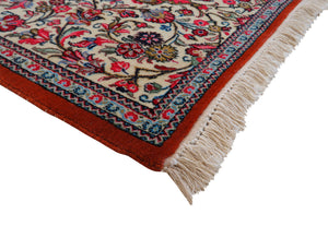 Dieser Teppich kommt aus der heiligen persischen Stadt Ghom, welche für besonders feine und exklusive Teppiche bei Sammlern auf der ganzen Welt bekannt geworden ist. Die verwendeten Materialen sind überwiegend Seide oder Korkwolle, besonders beliebt sind allerdings die Seidenteppiche aus reiner Naturseide. Die Seide lässt Farben je nach Lichteinfall in verschiedensten Facetten erstrahlen und wird dadurch zum absoluten Highlight in jedem Raum. Bekannte Manufakturen und Knüpfer signieren ihre Arbeit, wodurch der Teppich an Wert steigen kann. Die dichte Knüpfung und die hervorragenden Materialen sorgen dafür, dass der Teppich sehr strapazierfähig und langlebig ist.