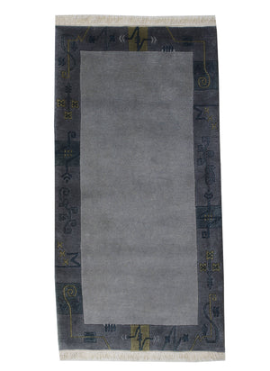 Dieser Teppich kommt aus Nepal oder Indien und wurde aus hochwertiger Wolle von Hand geknüpft. Das schlichte Design mit nur minimalen Motiven macht diesen Teppich zeitlos und modern. Die dichte Knüpfung und Materialen sorgen dafür, dass der Teppich sehr strapazierfähig und langlebig ist. Holen Sie sich die perfekte Mischung aus schlichtem Design und Gemütlichkeit in Ihr Zuhause.