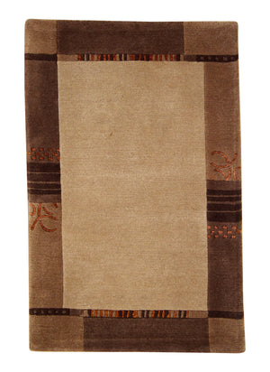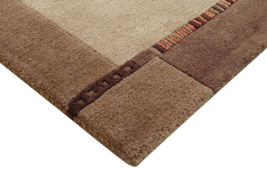 Dieser Teppich kommt aus Nepal oder Indien und wurde aus hochwertiger Wolle von Hand geknüpft. Das schlichte Design mit nur minimalen Motiven macht diesen Teppich zeitlos und modern. Die dichte Knüpfung und Materialen sorgen dafür, dass der Teppich sehr strapazierfähig und langlebig ist. Holen Sie sich die perfekte Mischung aus schlichtem Design und Gemütlichkeit in Ihr Zuhause.