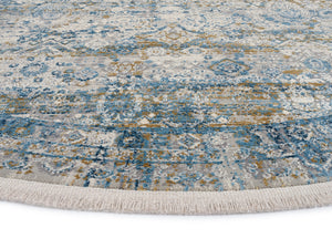 MINA ORIENT BLUE ROUND ist ein besonders aufwendiger Design-Teppich mit hochwertigen 3D Effekt. Der charmante Look überzeugt auf ganzer Linie, die sich in ausgezeichneter Qualität und edler Musterung widerspiegelt. Die exklusiv pflanzliche Viskose erzeugt in den prächtigen Kolorierungen angenehmen Glanz und samtweiche Oberflächenstruktur.