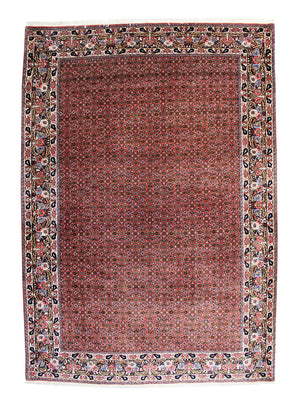 Dieser Teppich kommt aus der persischen Stadt Bidjar, welche nord-westlich im Iran liegt. Bekannt sind diese Teppiche für ihren besonders robusten Flor, der unter anderem durch das starke verwendete Garn bei der Schusskette entsteht. Der warme rostrote Grundfarbton eignet sich besonders gut, um Ihren Raum eine elegante Atmosphäre zu verleihen. Typisch für alle Bidjar Teppiche ist das Herati-Muster (Fischmuster), mit oder ohne Medaillon. Durch die verwendeten Materialen und die dichte Knüpfung ist dieser Teppich von besonders hoher Lebensdauer.