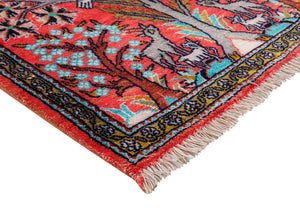 Dieser Teppich kommt aus der heiligen persischen Stadt Ghom, welche für besonders feine und exklusive Teppiche bei Sammlern auf der ganzen Welt bekannt geworden ist. Die verwendeten Materialen sind überwiegend Seide oder Korkwolle, besonders beliebt sind allerdings die Seidenteppiche aus reiner Naturseide. Die Seide lässt Farben je nach Lichteinfall in verschiedensten Facetten erstrahlen und wird dadurch zum absoluten Highlight in jedem Raum. Bekannte Manufakturen und Knüpfer signieren ihre Arbeit, wodurch der Teppich an Wert steigen kann. Die dichte Knüpfung und die hervorragenden Materialen sorgen dafür, dass der Teppich sehr strapazierfähig und langlebig ist.