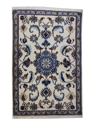 Dieser Teppich kommt aus der persischen Wüstenstadt Nain und ist bekannt für seine elegante blauweiße Farbgebung. Bei Teppichliebhabern gelten Nain Teppiche als besonders schön durch ihre fein gestalteten Motive. Die verwendeten Materialen sind überwiegend Wolle oder Korkwolle mit Seide. Die dichte Knüpfung und die hervorragenden Materialen sorgen dafür, dass der Teppich sehr strapazierfähig und langlebig ist. Unterschieden wird in der Feinheit des Teppichs durch die Angaben 9LA-4LA.Die feinste Knüpfung liegt bei 4LA mit bis zu 1000000 Knoten pro Quadratmeter. Holen Sie sich ein Bodenkunstwerk, welches sich wunderbar in Ihre Wohnung einfügt.