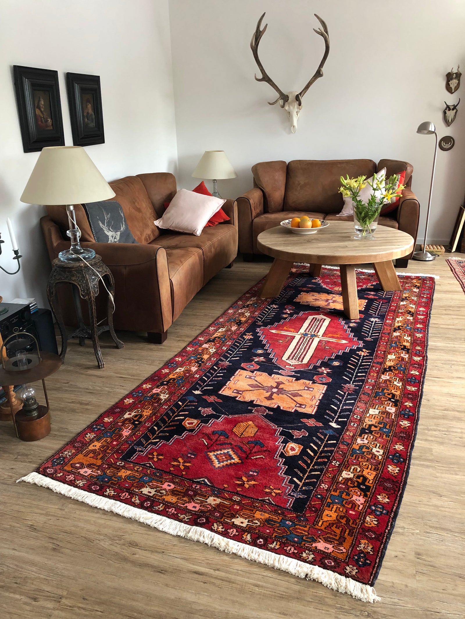 Dieser farbenfrohe Nomadenteppich bringt durch seine Pflanzenfarben Wärme in den Raum und ist sehr unempfindlich bei Flecken. Das exotische Maß lockert die Sitzecke auf und passt zur schönen Einrichtung. Das geometrische Motiv wirkt zudem nicht so verspielt wie ein Florales, welches häufig bei Orientteppichen ist.