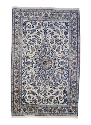 Dieser Teppich kommt aus der persischen Wüstenstadt Nain und ist bekannt für seine elegante blauweiße Farbgebung. Bei Teppichliebhabern gelten Nain Teppiche als besonders schön durch ihre fein gestalteten Motive. Die verwendeten Materialen sind überwiegend Wolle oder Korkwolle mit Seide. Die dichte Knüpfung und die hervorragenden Materialen sorgen dafür, dass der Teppich sehr strapazierfähig und langlebig ist. Unterschieden wird in der Feinheit des Teppichs durch die Angaben 9LA-4LA.Die feinste Knüpfung liegt bei 4LA mit bis zu 1000000 Knoten pro Quadratmeter. Holen Sie sich ein Bodenkunstwerk, welches sich wunderbar in Ihre Wohnung einfügt.